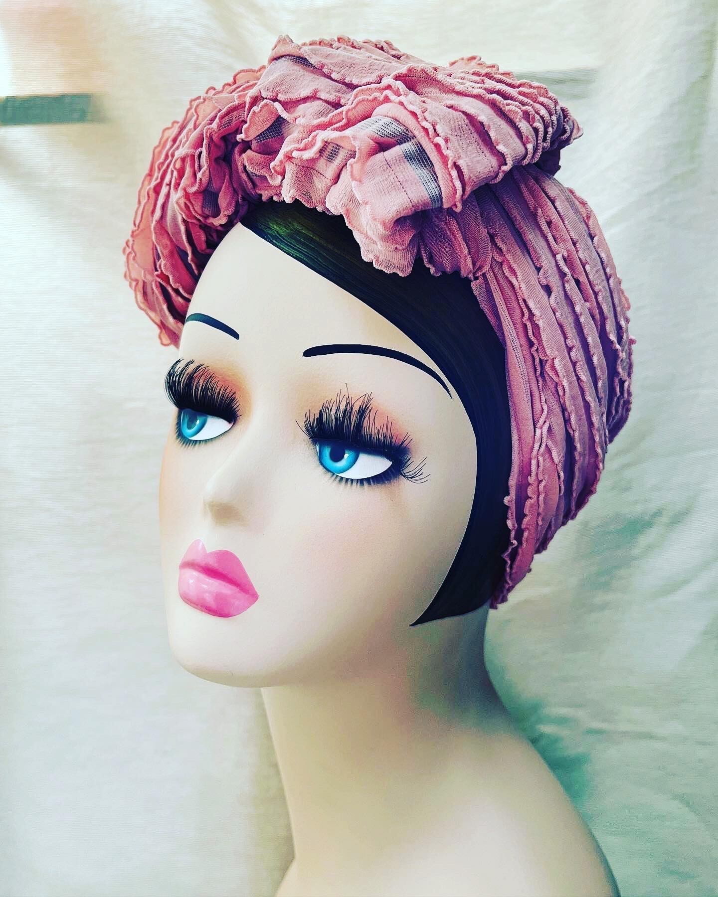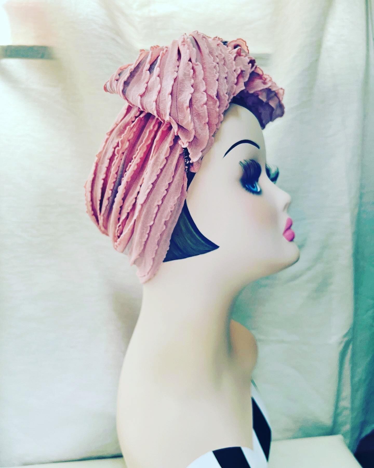 ゴムを使わないニットターバン⭐️ピンクフリル