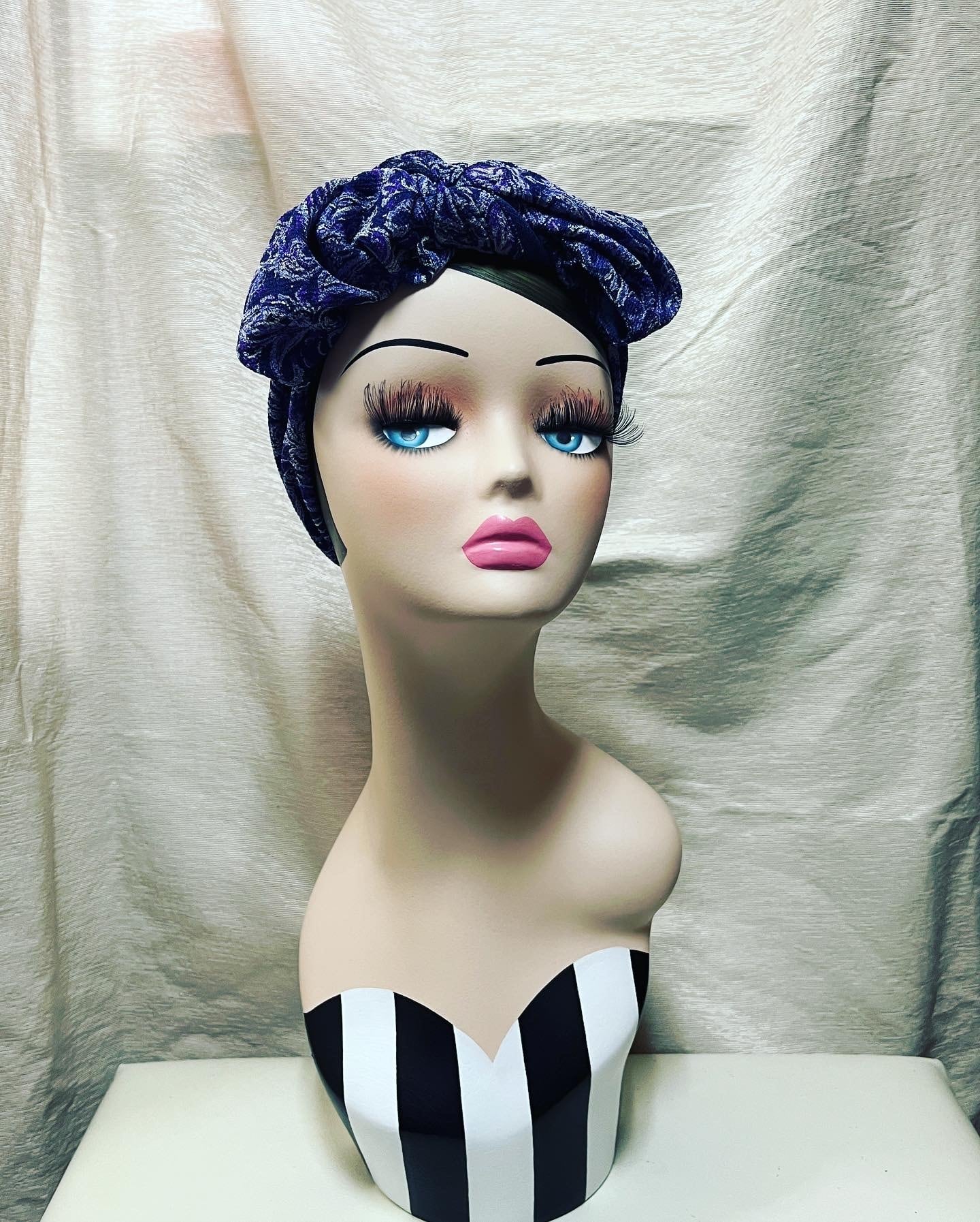 ゴムを使わないニットターバン⭐️パープルペイズリー